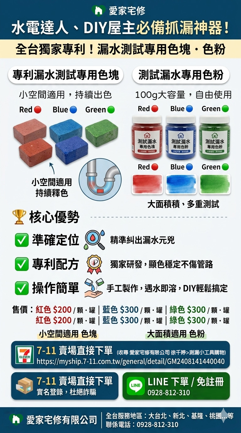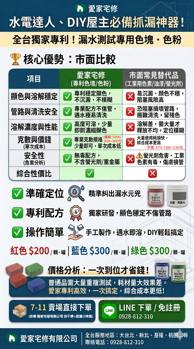 🔧 獨家專利|漏水測試專用色塊、色粉 抓漏測試、管路檢測好用的小工具 👍